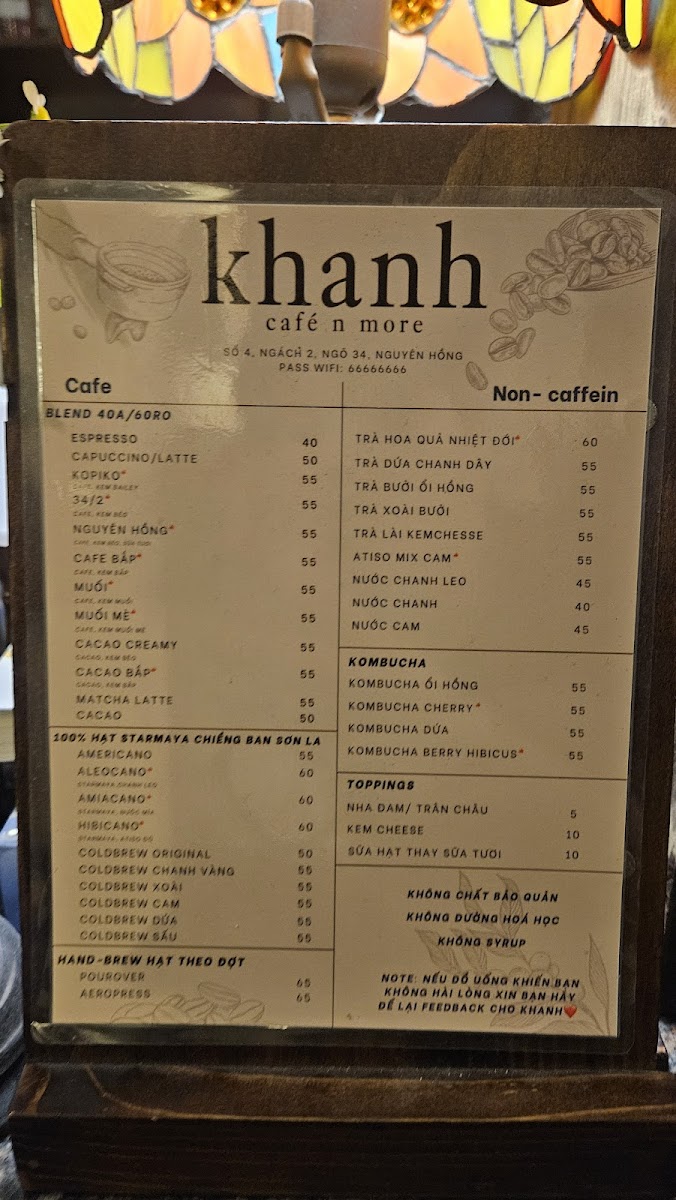 In a world where cafes can often feel rushed and commercialized, Khanh Cafe stands out as a place of genuine charm and comfort, perfect for enjoying a moment of tranquility with a good drink in hand. Whether you're looking to gather with friends, catch up on work, or simply savor a peaceful moment, Khanh Cafe promises to deliver an exceptional experience you won't soon forget.